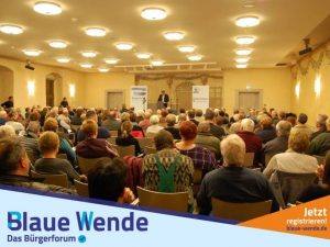 Dass das Konzept der ‚Blauen Wende‘ durchaus aufgeht, zeigte nicht nur vielfältig geäußerte Zustimmung aus den Zuhörerreihen zum Ansatz des Forums, sondern auch die über Parteigrenzen hinweg bunt gestreute Zusammensetzung des Publikums. Darunter SPD-Mitglieder, Freie Wähler aber auch ehemalige AfDler und andere mehr.