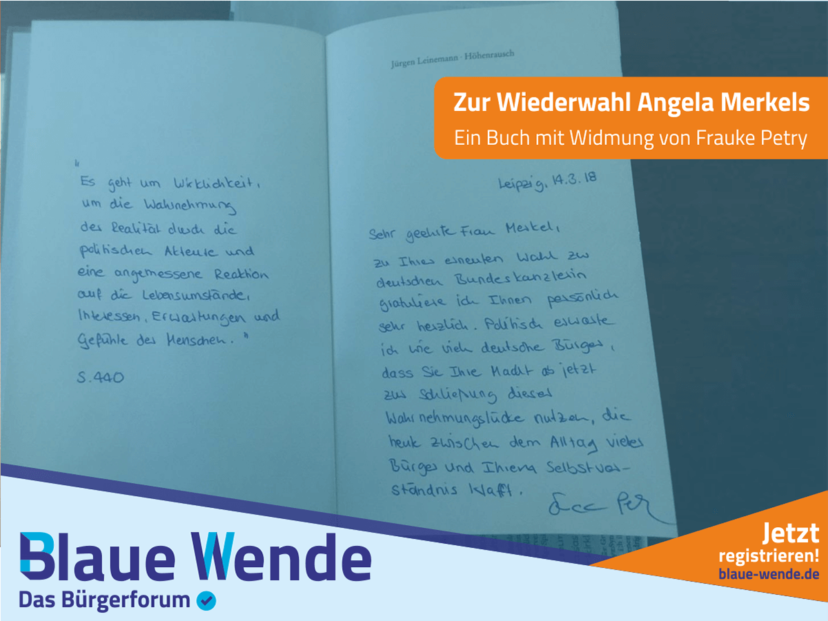 Zum vierten Mal in Folge wird heute die „ewige“ Kanzlerin im Deutschen Bundestag ins Amt gewählt. Die Freude über dieses Ereignis ist, auch ausweislich des Ergebnisses der inzwischen lange zurückliegenden Bundestagswahl, unter den Bürgern nicht ungeteilt. Aber unterschiedliche politische Auffassungen sind eine Sache, Stil und Anstand eine andere. Und deshalb gratuliere auch ich Angela Merkel zum Start in ihre vierte Amtsperiode – nicht ohne ihr allerdings eine kleine Botschaft mit auf den Weg zu geben. Und die heißt in literarischer Form: „Höhenrausch. Die wirklichkeitsleere Welt der Politiker“. Wie ich finde, passend. Und da man Bücher selten ohne eine persönliche Widmung verschenkt, habe auch ich einige wenige Zeilen für die Kanzlerin eingefügt.
